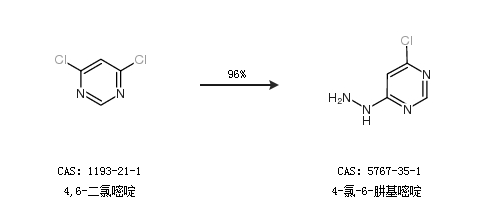 1.通过4,6-二氯嘧啶合成4-氯-6-肼基嘧啶,收率约96%;