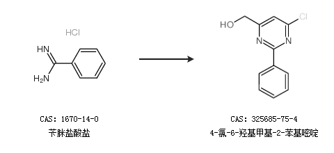 2.通过苄脒盐酸盐合成4-氯-6-羟基甲基-2-苯基嘧啶