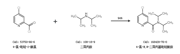 1.通过4-氯-吡啶-2-酰氯和二异丙胺合成4-氯-N,N-二异丙基吡啶酰胺,收率约94%;