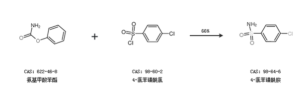 2.通过氨基甲酸苯酯和4-氯苯磺酰氯合成4-氯苯磺酰胺,收率约66%;