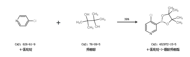 1.通过4-氯吡啶和频哪醇合成4-氯吡啶-3-硼酸频哪酯,收率约39%;