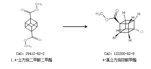 1.通过1,4-立方烷二甲酸二甲酯合成4-氯立方烷羧酸甲酯