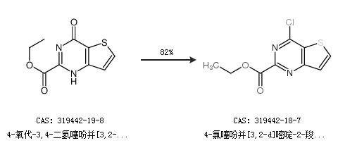 1.通过4-氧代-3,4-二氢噻吩并[3,2-d]嘧啶-2-羧酸乙酯合成4-氯噻吩并[3,2-d]嘧啶-2-羧酸乙酯,收率约82%;