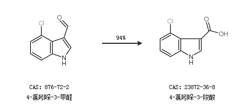 1.通过4-氯吲哚-3-甲醛合成4-氯吲哚-3-羧酸,收率约94%;
