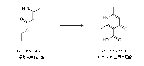 1.通过3-氨基巴豆酸乙酯合成4-羟基-2,6-二甲基烟酸