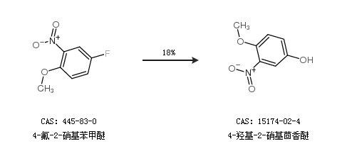 2.通过4-氟-2-硝基苯甲醚合成4-羟基-2-硝基茴香醚,收率约18%;