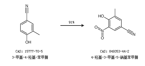 1.通过3-甲基-4-羟基-苯甲腈合成4-羟基-3-甲基-5-硝基苯甲腈,收率约91%;