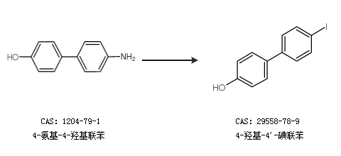 2.通过4-氨基-4-羟基联苯合成4-羟基-4''-碘联苯
