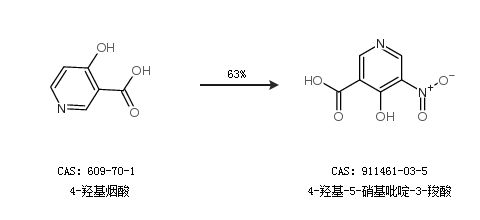 1.通过4-羟基烟酸合成4-羟基-5-硝基吡啶-3-羧酸,收率约63%;