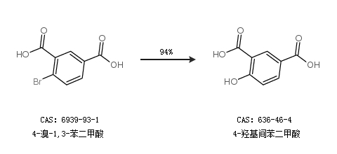 1.通过4-溴-1,3-苯二甲酸合成4-羟基间苯二甲酸,收率约94%;