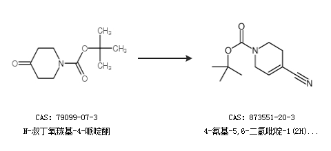2.通过N-叔丁氧羰基-4-哌啶酮合成4-氰基-5,6-二氢吡啶-1(2H)-羧酸叔丁酯