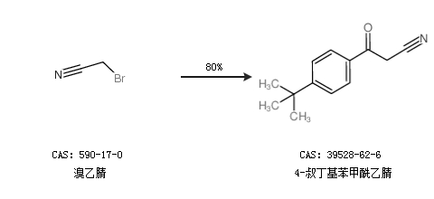 1.通过溴乙腈合成4-叔丁基苯甲酰乙腈,收率约80%;