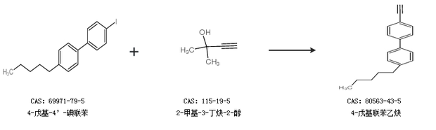 2.通过4-戊基-4’-碘联苯和2-甲基-3-丁炔-2-醇合成4-戊基联苯乙炔