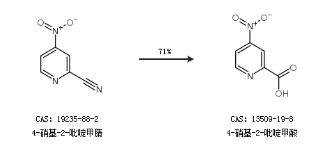 1.通过4-硝基-2-吡啶甲腈合成4-硝基-2-吡啶甲酸,收率约71%;