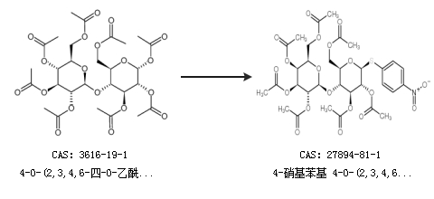 中文名称 4-硝基苯基 4-O-(2,3,4,6-O-四乙酰基-beta-D-吡喃半乳糖基)-2,3,6-O-三乙酰基-beta-D-硫代吡喃葡萄糖苷