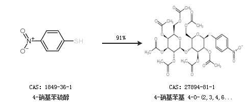 2.通过4-O-(2,3,4,6-四-O-乙酰基)-β-D-吡喃(型)葡糖基-D-吡喃(型)葡糖四乙酸酯合成4-硝基苯基 4-O-(2,3,4,6-O-四乙酰基-beta-D-吡喃半乳糖基)-2,3,6-O-三乙酰基-beta-D-硫代吡喃葡萄糖苷