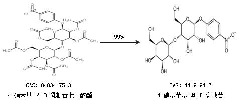 2.通过4-硝苯基-β-D-乳糖苷七乙酸酯合成4-硝基苯基-Β-D-乳糖苷,收率约99%;