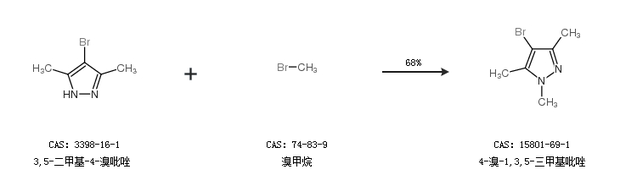 2.通过3,5-二甲基-4-溴吡唑和溴甲烷合成4-溴-1,3,5-三甲基吡唑,收率约68%;
