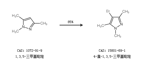 1.通过1,3,5-三甲基吡唑合成4-溴-1,3,5-三甲基吡唑,收率约85%;