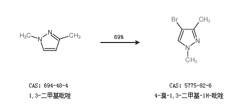 2.通过1,3-二甲基吡唑合成4-溴-1,3-二甲基-1H-吡唑,收率约69%;