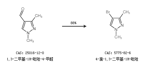 1.通过1,3-二甲基-1H-吡唑-4-甲醛合成4-溴-1,3-二甲基-1H-吡唑,收率约88%;