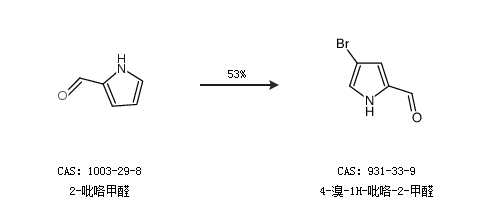 1.通过2-吡咯甲醛合成4-溴-1H-吡咯-2-甲醛,收率约53%;