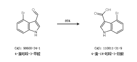 1.通过4-溴吲哚-3-甲醛合成4-溴-1H-吲哚-3-羧酸,收率约85%;