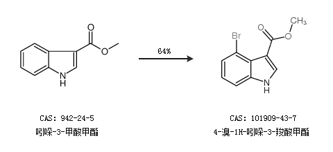 1.通过吲哚-3-甲酸甲酯合成4-溴-1H-吲哚-3-羧酸甲酯,收率约64%;