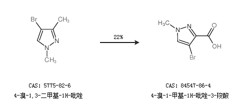 1.通过4-溴-1,3-二甲基-1H-吡唑合成4-溴-1-甲基-1H-吡唑-3-羧酸,收率约22%;