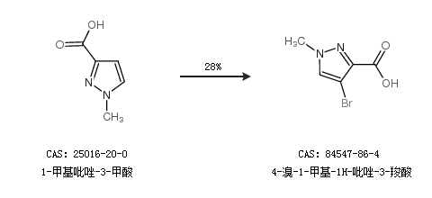 2.通过1-甲基吡唑-3-甲酸合成4-溴-1-甲基-1H-吡唑-3-羧酸,收率约28%;