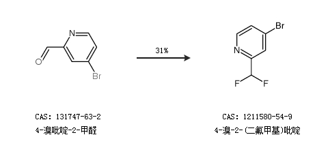 1.通过4-溴吡啶-2-甲醛合成4-溴-2-(二氟甲基)吡啶,收率约31%;