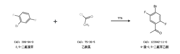 2.通过2,5-二氟溴苯和乙酰氯合成4-溴-2,5-二氟苯乙酮,收率约77%;
