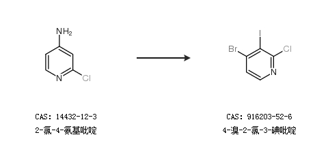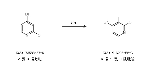 1.通过2-氯-4-溴吡啶合成4-溴-2-氯-3-碘吡啶,收率约79%;
