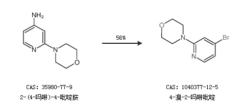 1.通过2-(4-吗啉)-4-吡啶胺合成4-溴-2-吗啉吡啶,收率约56%;