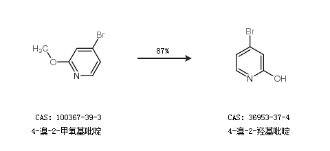 1.通过4-溴-2-甲氧基吡啶合成4-溴-2-羟基吡啶,收率约87%;