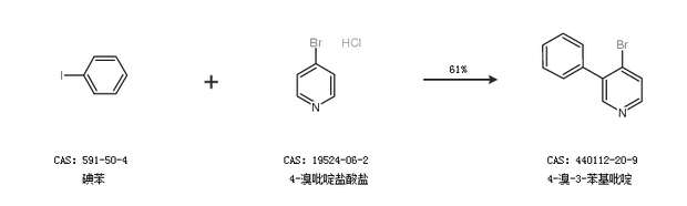 1.通过碘苯和4-溴吡啶盐酸盐合成4-溴-3-苯基吡啶,收率约61%;