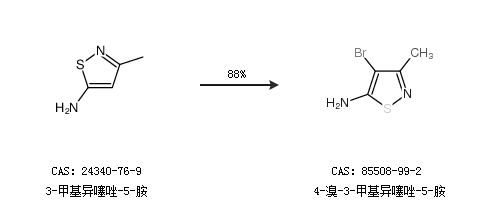 1.通过3-甲基异噻唑-5-胺合成4-溴-3-甲基异噻唑-5-胺,收率约88%;