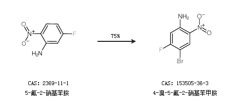 2.通过5-氟-2-硝基苯胺合成4-溴-5-氟-2-硝基苯甲胺,收率约75%;
