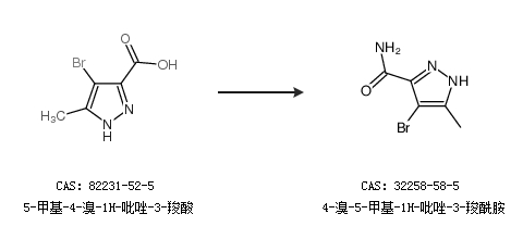 2.通过5-甲基-4-溴-1H-吡唑-3-羧酸合成4-溴-5-甲基-1H-吡唑-3-羧酰胺