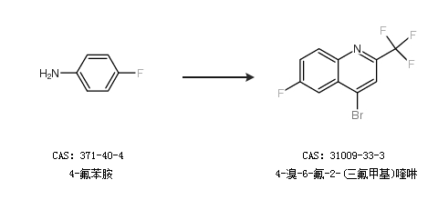 1.通过4-氟苯胺合成4-溴-6-氟-2-(三氟甲基)喹啉