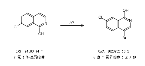 1.通过7-氯-1-羟基异喹啉合成4-溴-7-氯异喹啉-1(2H)-酮,收率约89%;