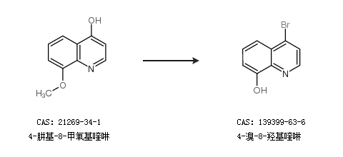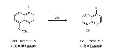 1.通过4-溴-8-甲氧基喹啉合成4-溴-8-羟基喹啉,收率约92%;