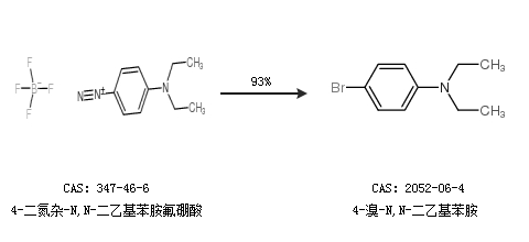 2.通过4-二氮杂-N,N-二乙基苯胺氟硼酸合成4-溴-N,N-二乙基苯胺,收率约93%;