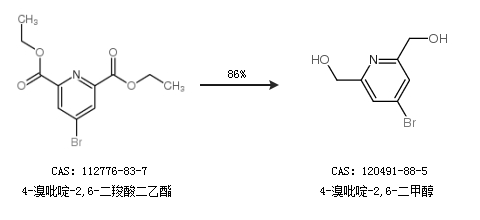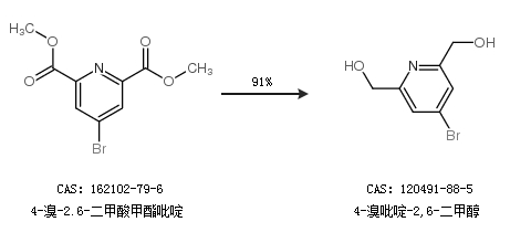 1.通过4-溴-2.6-二甲酸甲酯吡啶合成4-溴吡啶-2,6-二甲醇,收率约91%;