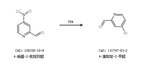 2.通过4-硝基-2-吡啶羧醛合成4-溴吡啶-2-甲醛,收率约78%;