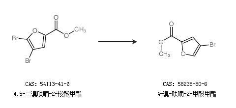 2.通过4,5-二溴呋喃-2-羧酸甲酯合成4-溴-呋喃-2-甲酸甲酯