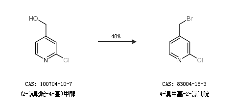 1.通过(2-氯吡啶-4-基)甲醇合成4-溴甲基-2-氯吡啶,收率约48%;
