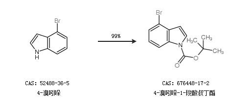 1.通过4-溴吲哚合成4-溴吲哚-1-羧酸叔丁酯,收率约99%;