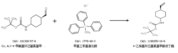 1.通过(1r,4r)-4-甲酰基环己基氨基甲酸叔丁酯和甲基三苯基溴化膦合成4-乙烯基环己基氨基甲酸叔丁酯