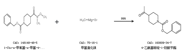 1.通过1-Cbz-n-甲氧基-n-甲基-4-哌啶羧酰胺和甲基溴化镁合成4-乙酰基哌啶-1-羧酸苄酯,收率约99%;